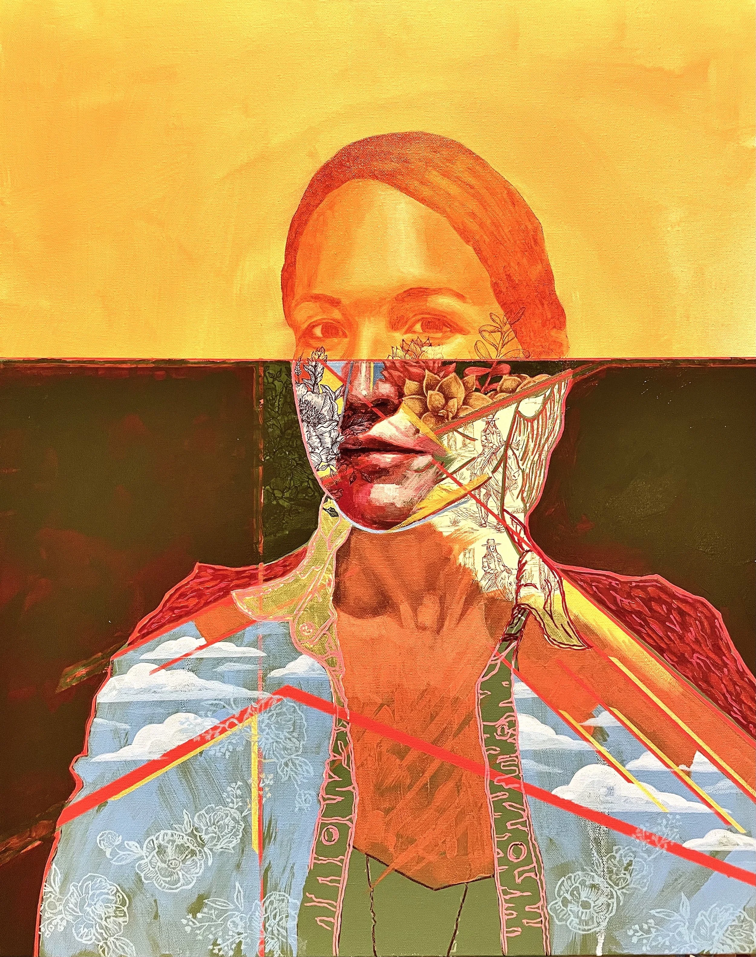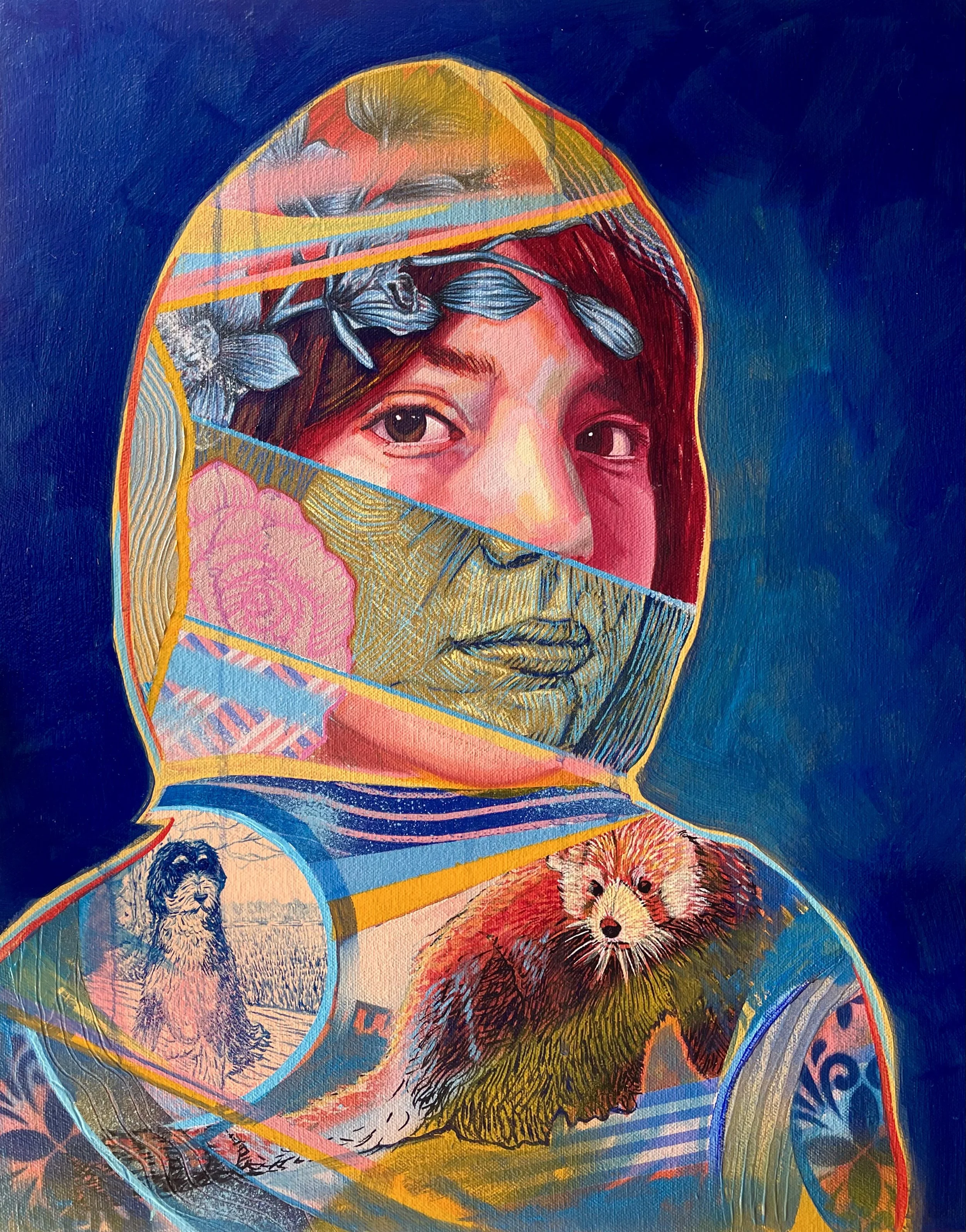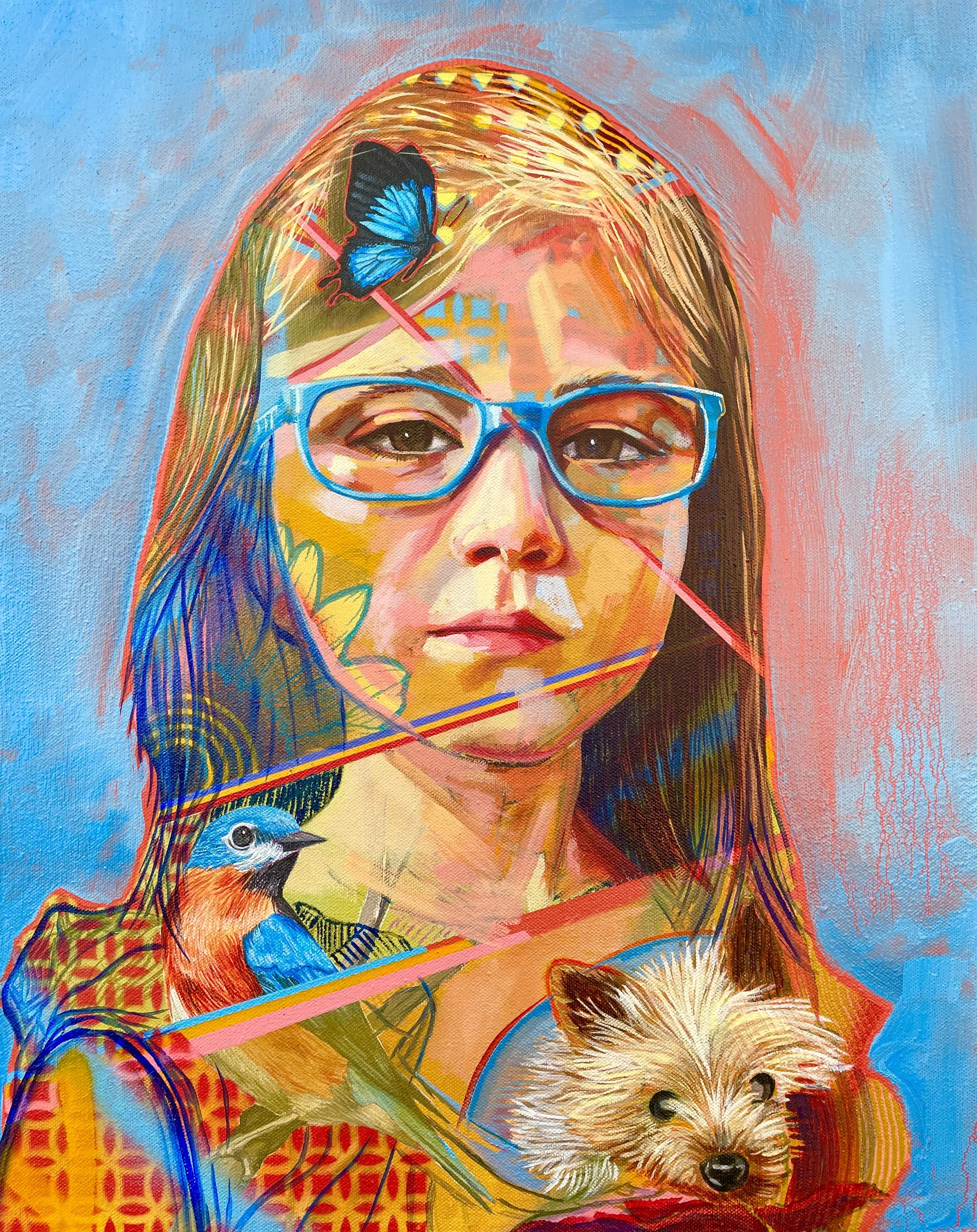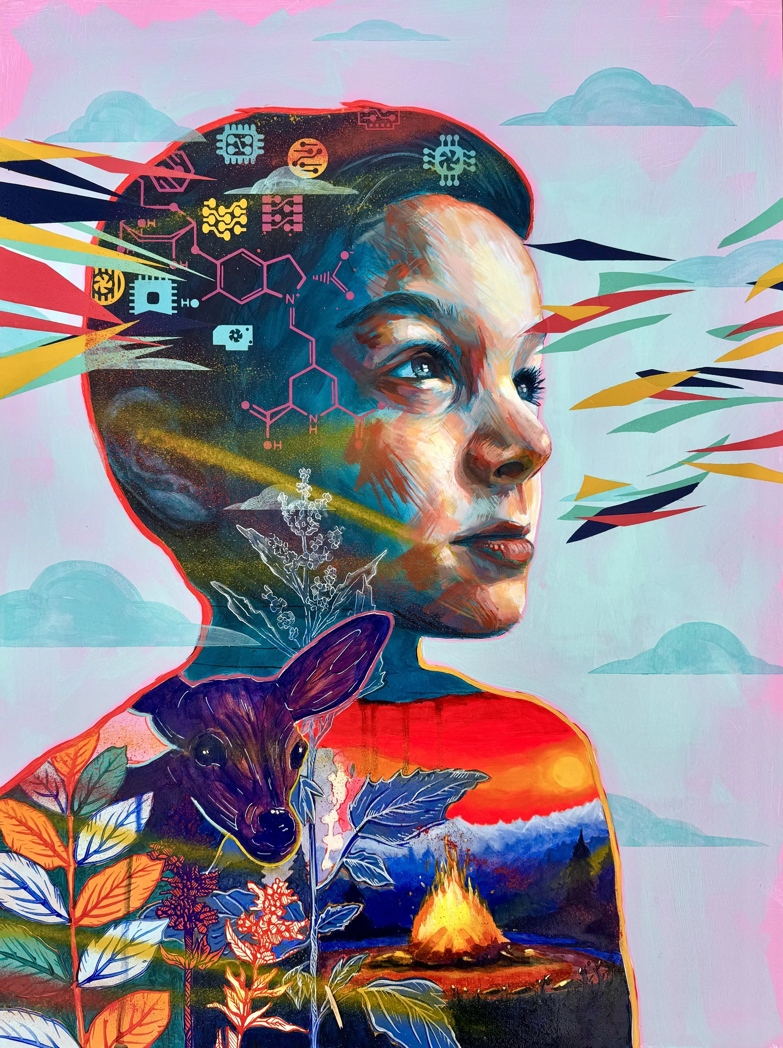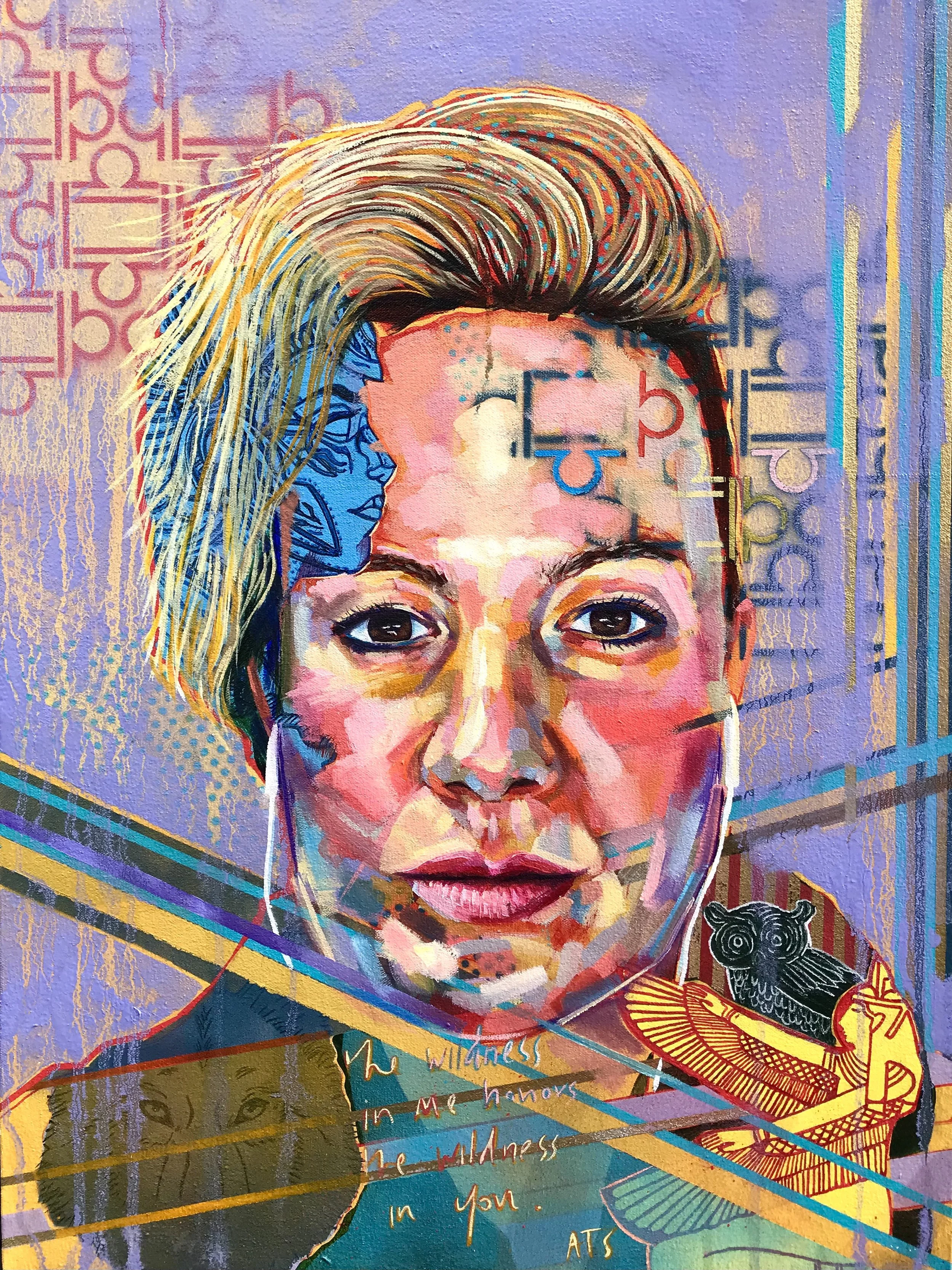 Sloane | oil, acrylic, aerosol, ink pen on canvas | 24 x 18 in. (SOLD)