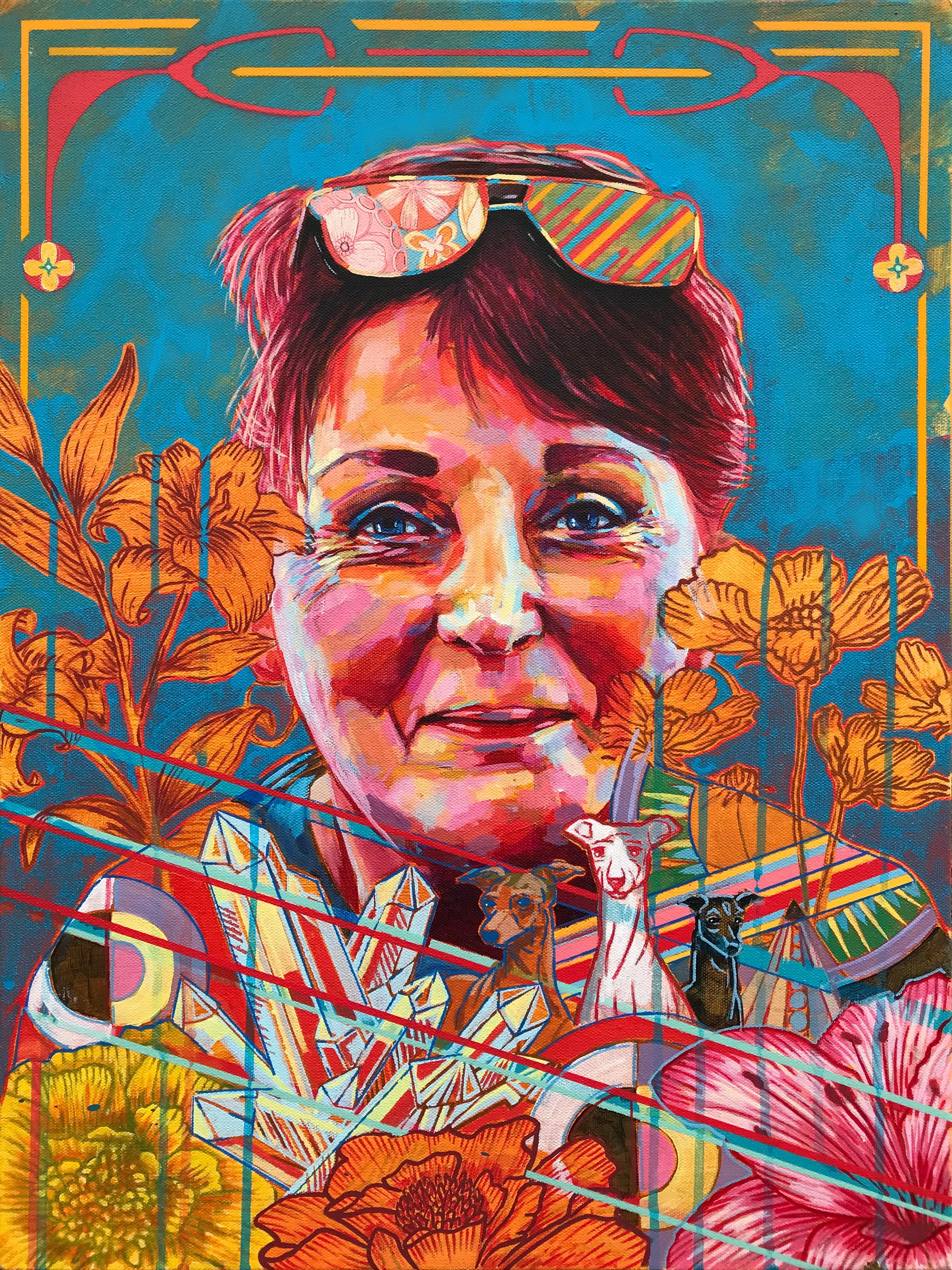 Molly in the Garden | acrylic, aerosol, ink pen on canvas | 24 x 18 in.(SOLD)