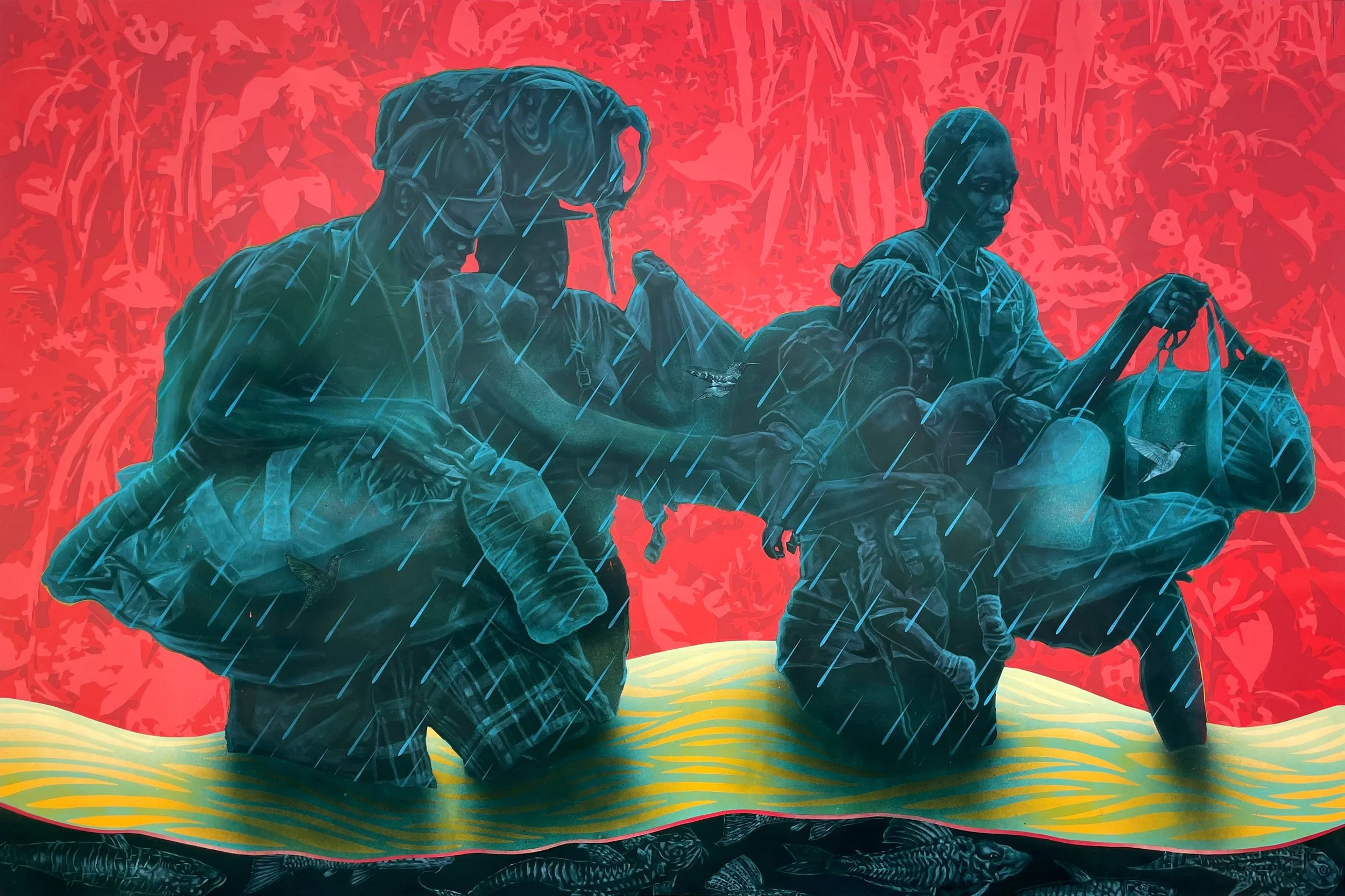 Darian Gap | oil, aerosol, acrylic on panel | 48 x 72 in. (SOLD)