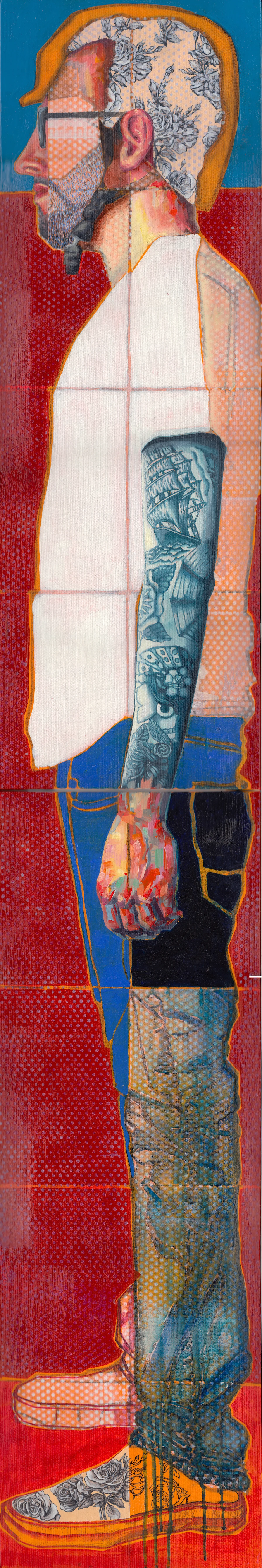 No Wading, In Profile (diptych) | oil, acrylic, aerosol, charcoal on canvas | 72 x 12 in. | (SOLD)