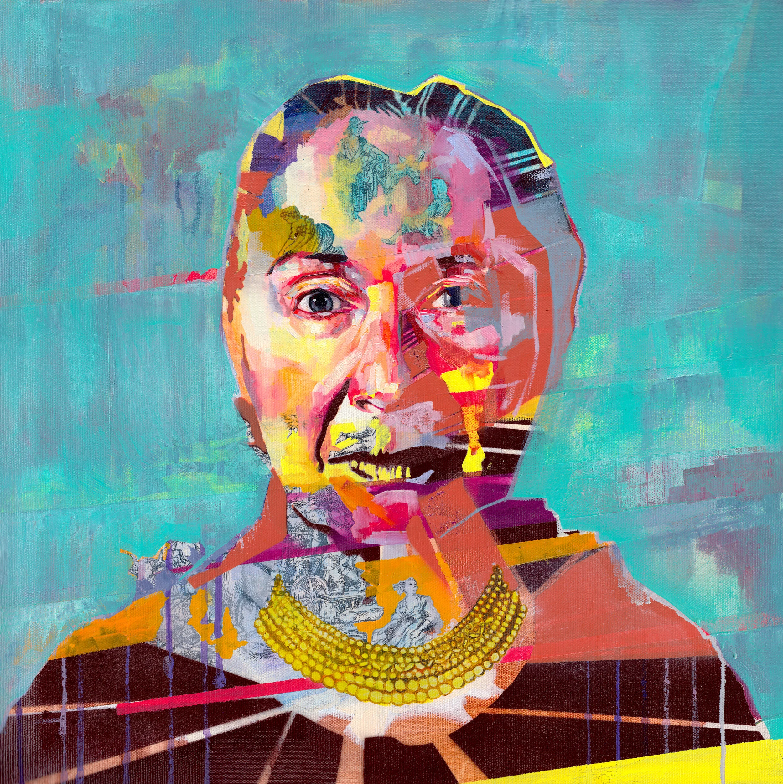 Untitled | collaboration with Chris Cropper | acrylic, marker, found materials on panel | 40" x 30"