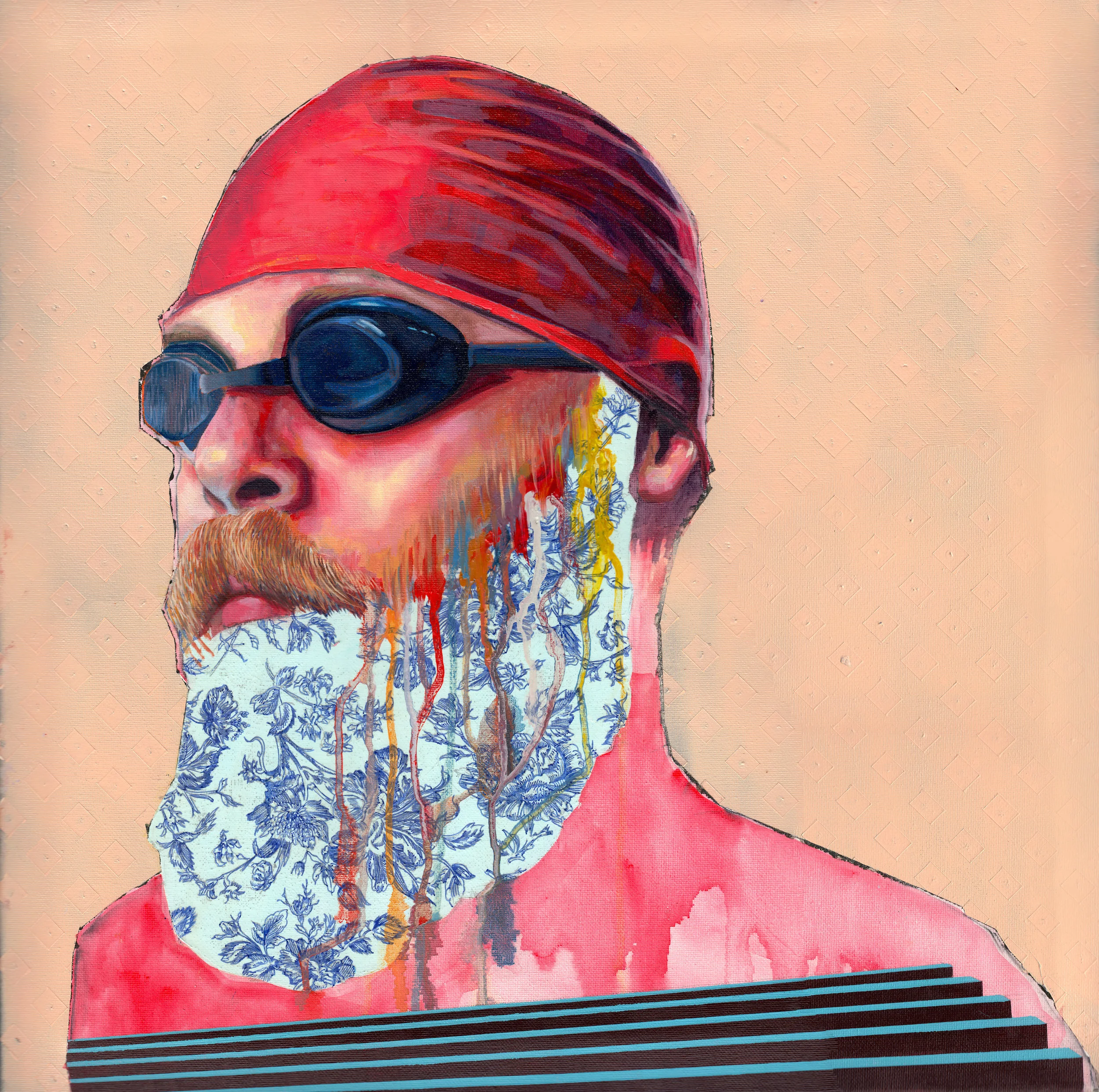 Lap Lane Closed #1 | oil, aerosol, acrylic, pen & ink on canvas | 20 x 20 in. (SOLD)