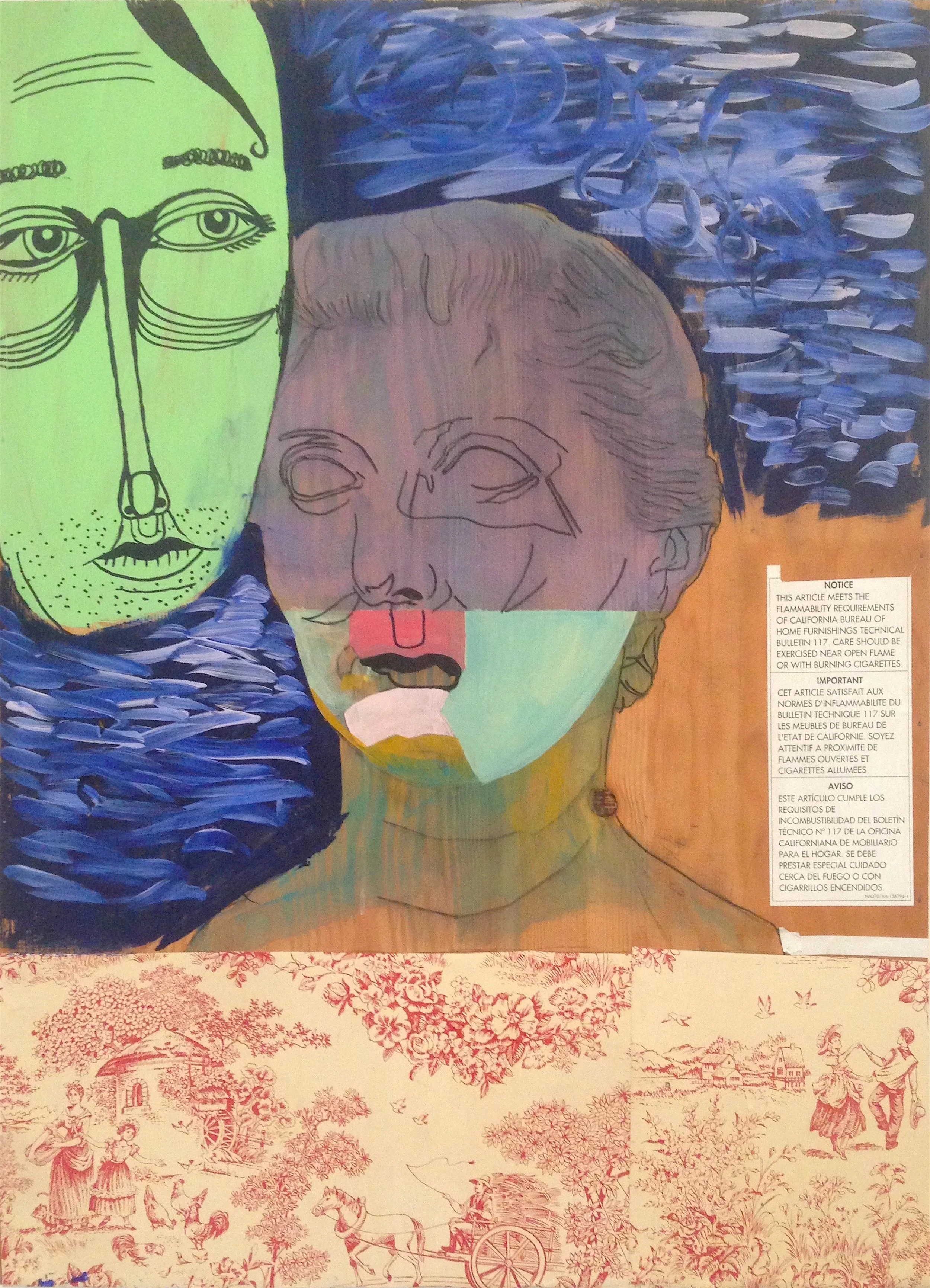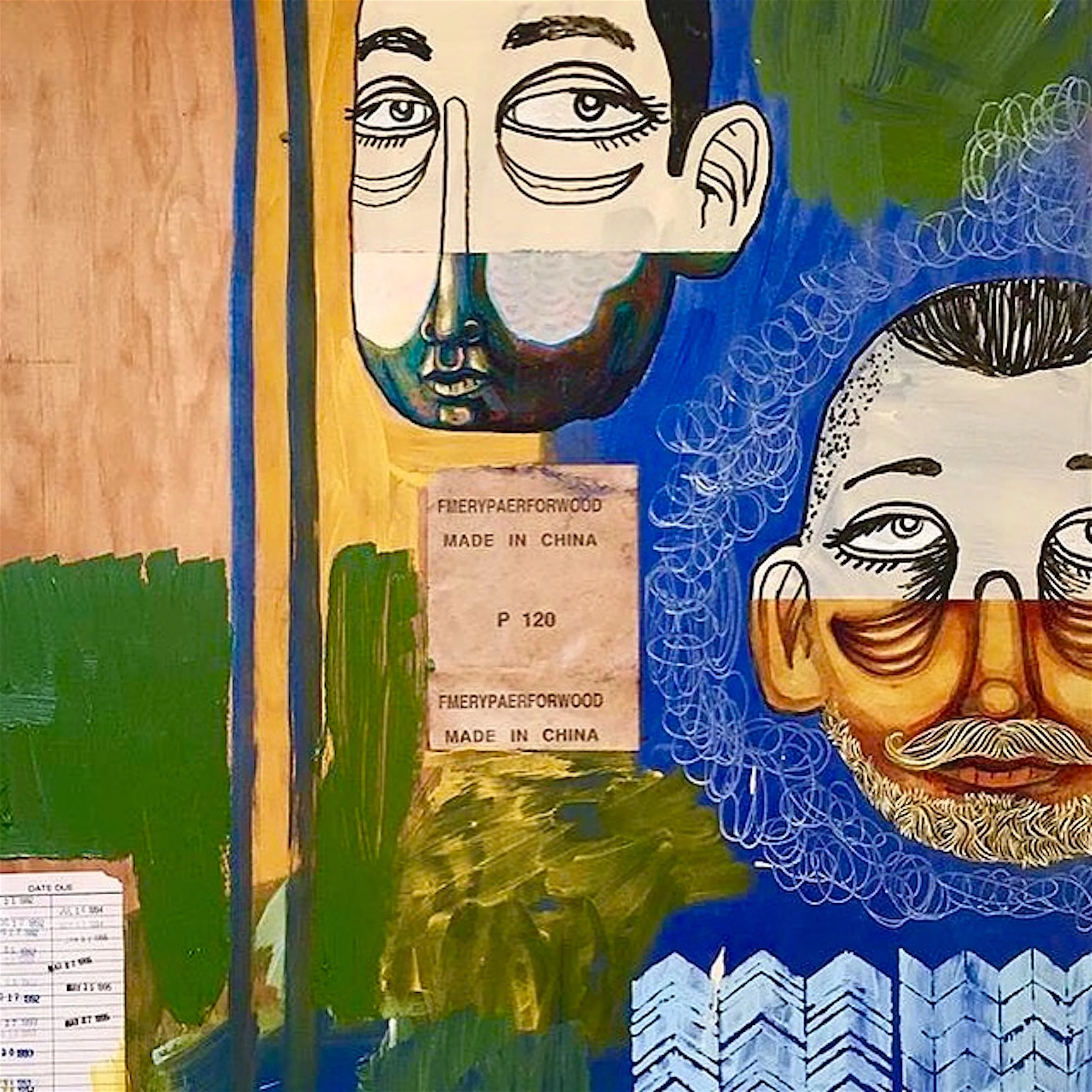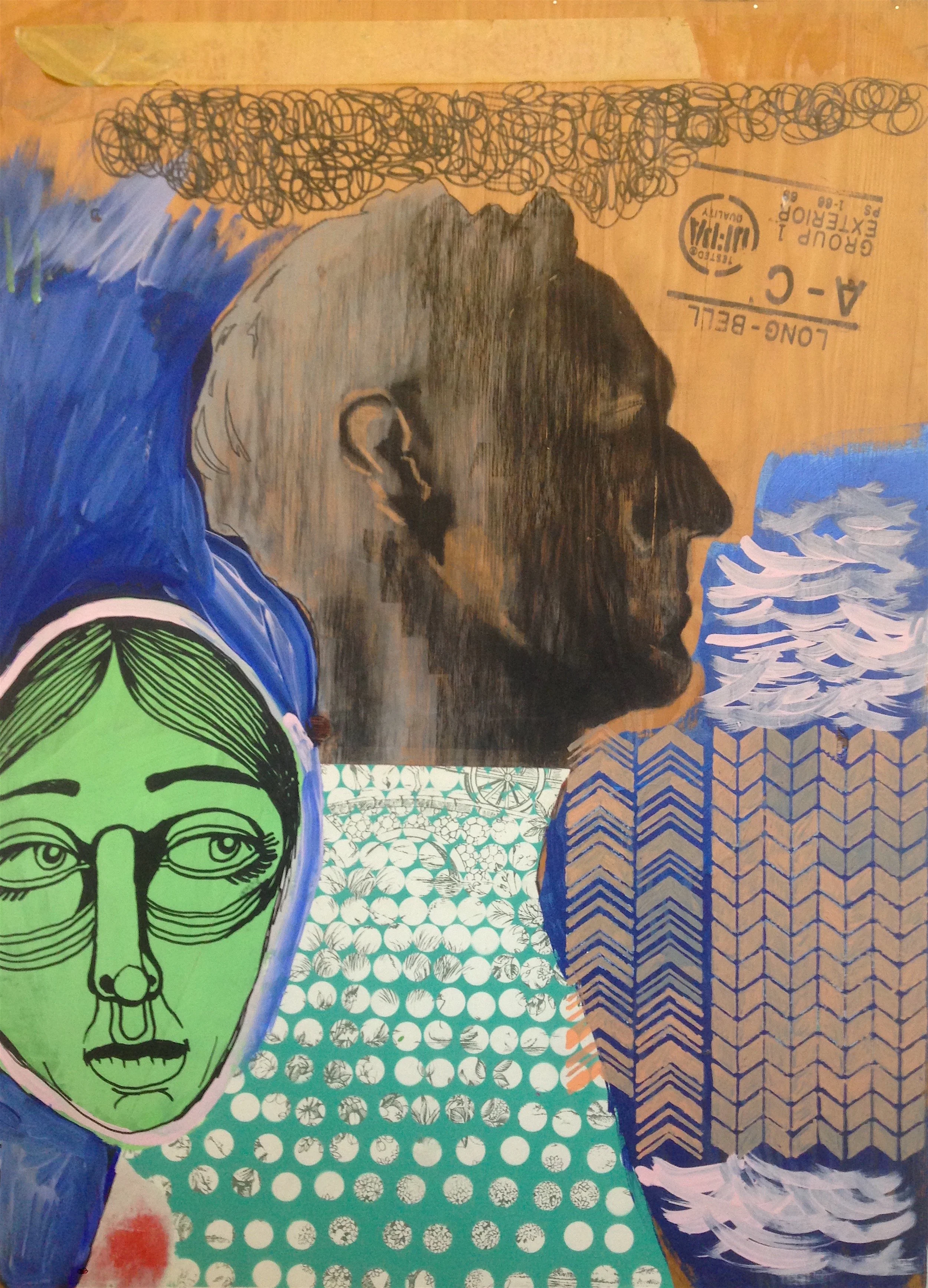 Fmerypaerforwood | collaboration with Chris Cropper | acrylic, oil, found materials on panel | 40" x 30" | (SOLD)